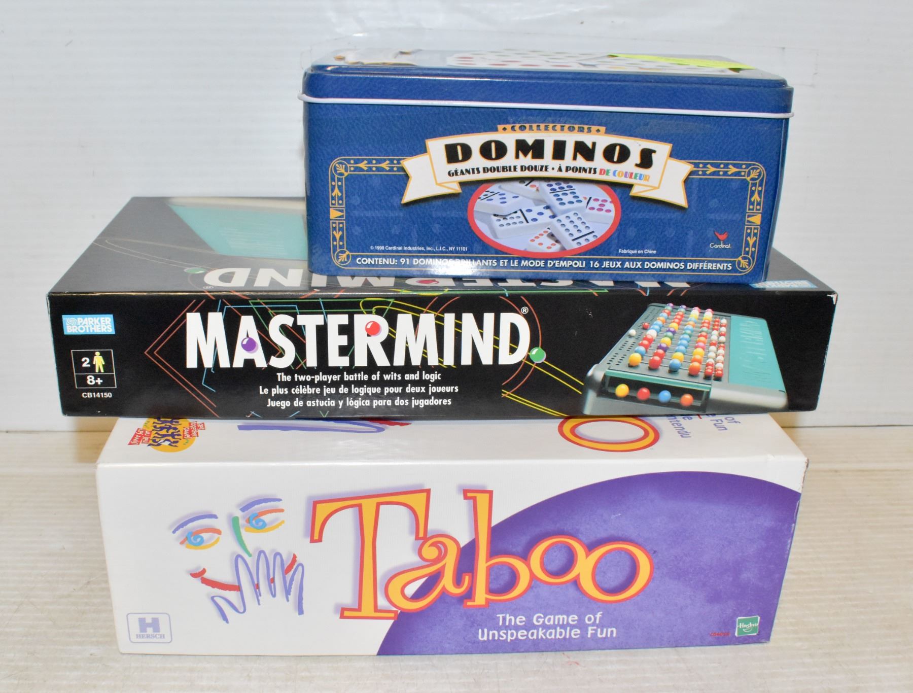 LOT OF 3 BOARD GAMES INCLUDES TABOO, MASTERMIND&