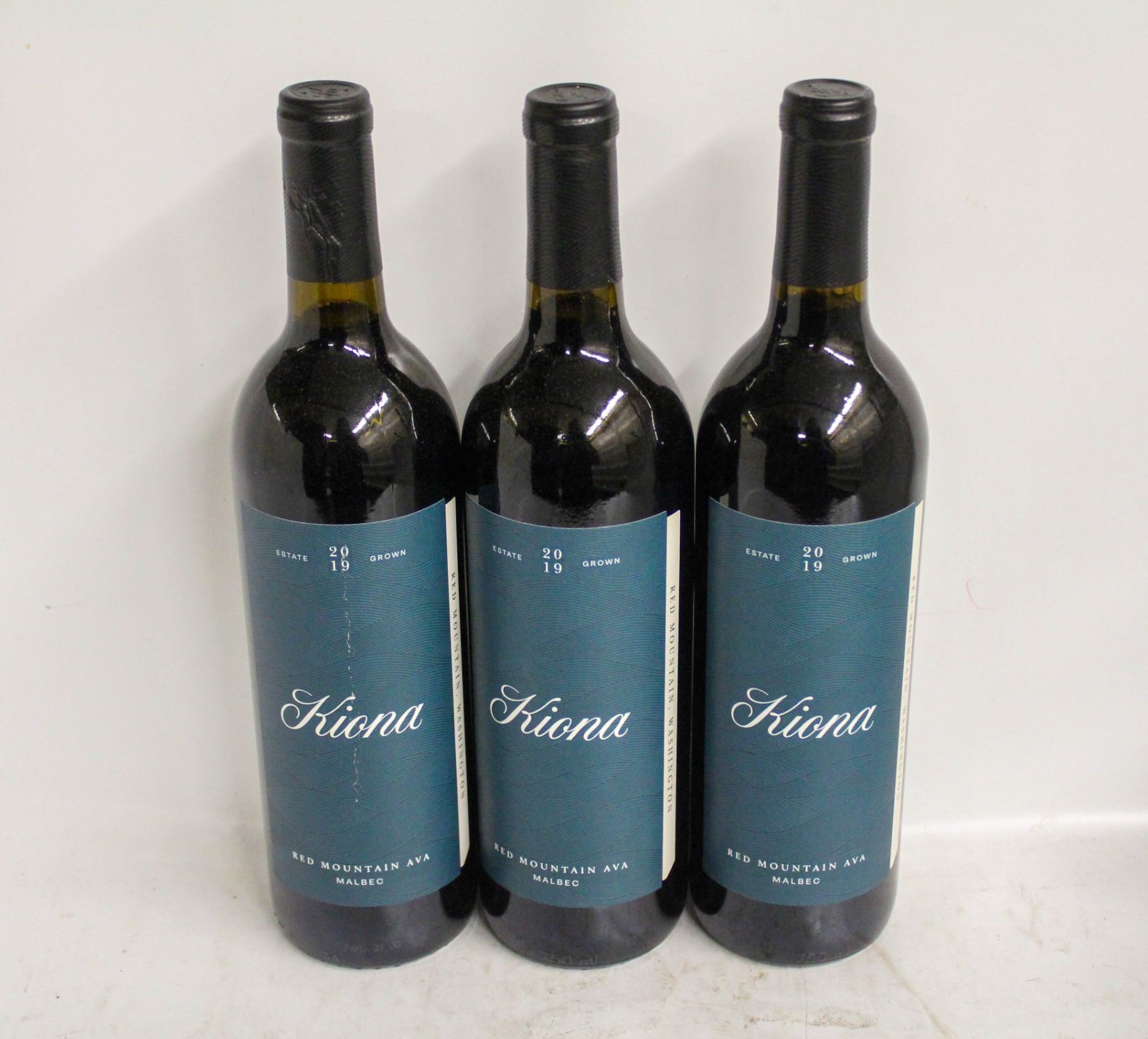 LOT OF 3 BOTTLES OF 2019 KIONA MALBEC 14.5% 750ML
