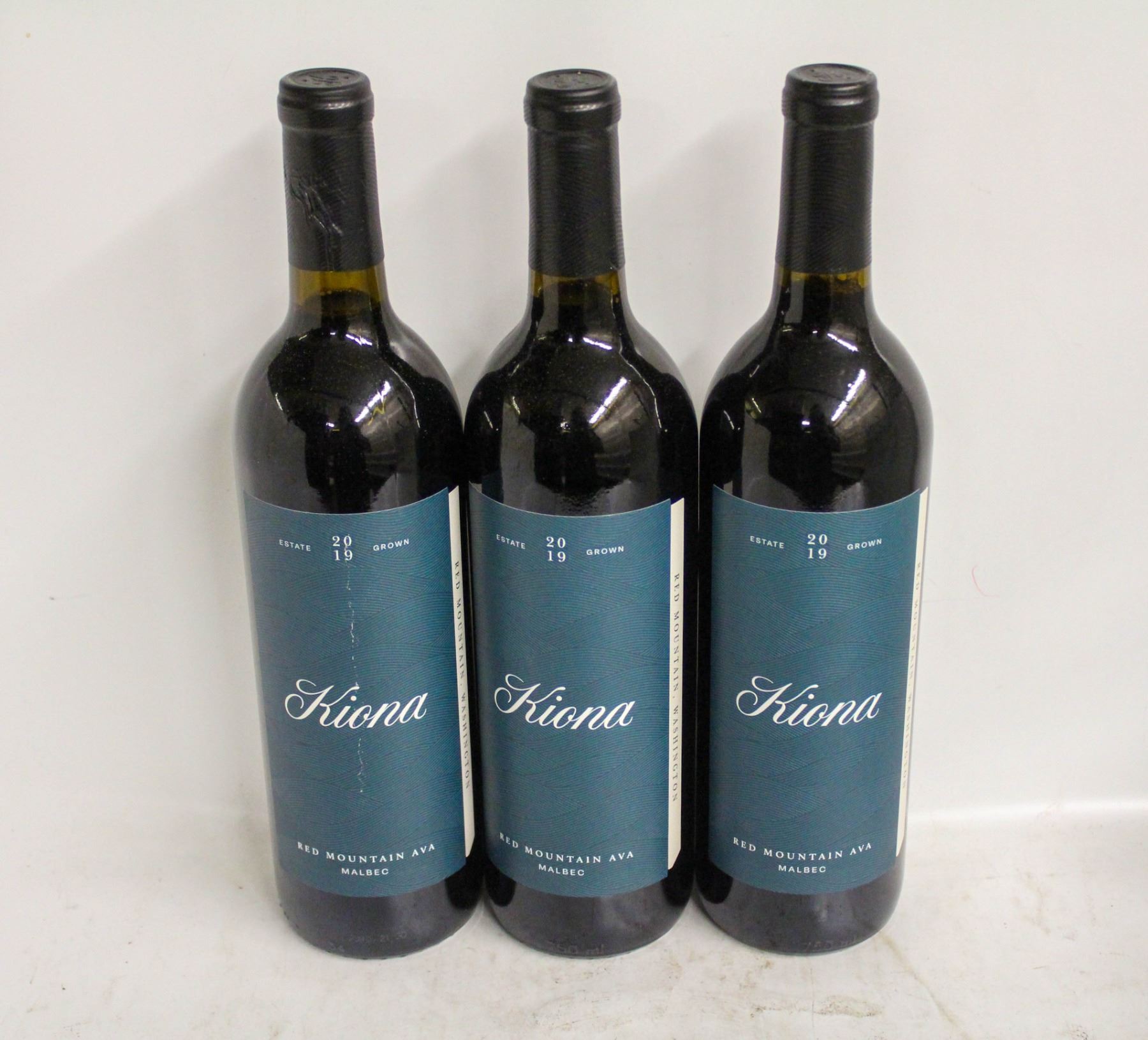 LOT OF 3 BOTTLES OF 2019 KIONA MALBEC 14.5% 750ML