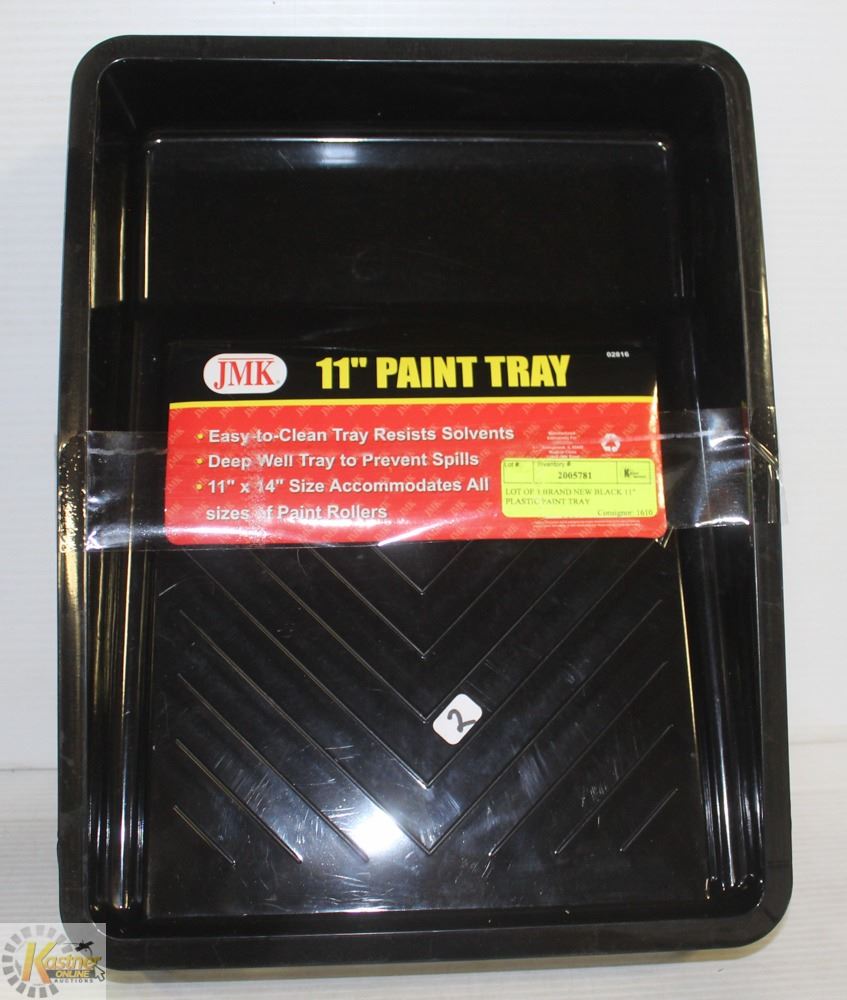 LOT OF 3 BRAND NEW BLACK 11" PLASTIC PAINT TRAY