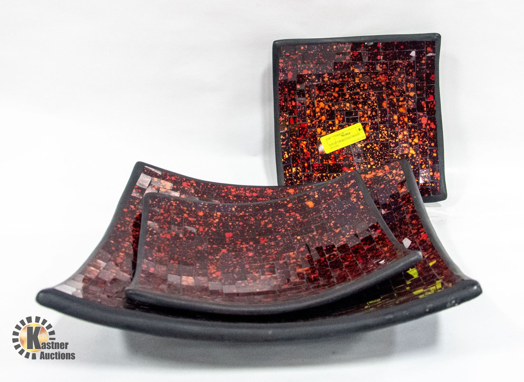 LOT OF 3 BURGUNDY MOSAIC PLATES