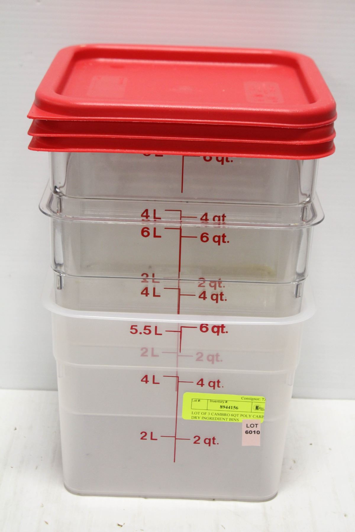 LOT OF 3 CAMBRO 6QT POLY CARB DRY INGREDIENT BINS