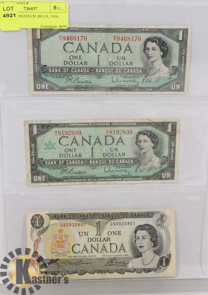 LOT OF 3 CANADA $1 BILLS, 1954, 1967, 1973