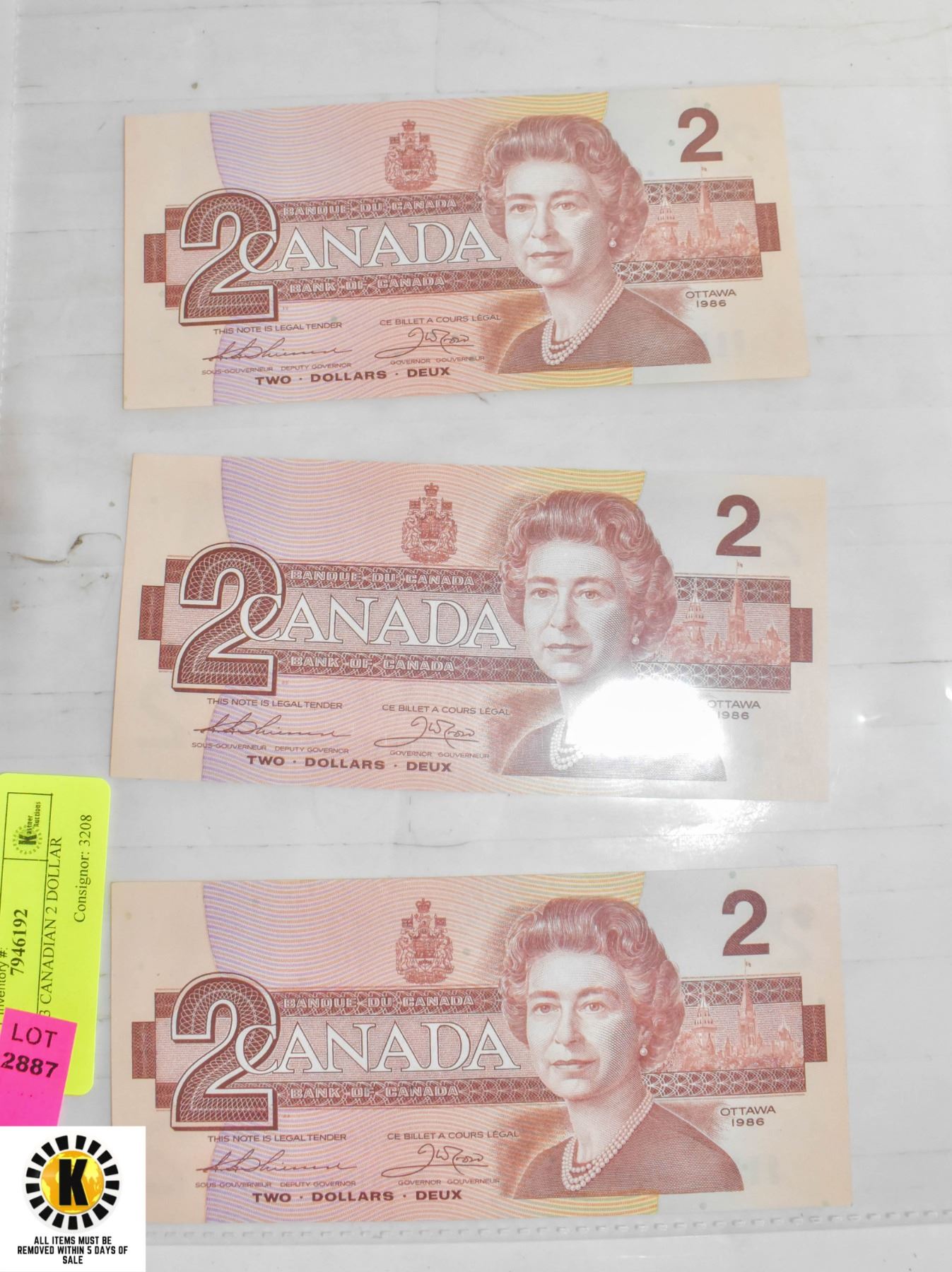 LOT OF 3 CANADIAN 2 DOLLAR BILLS