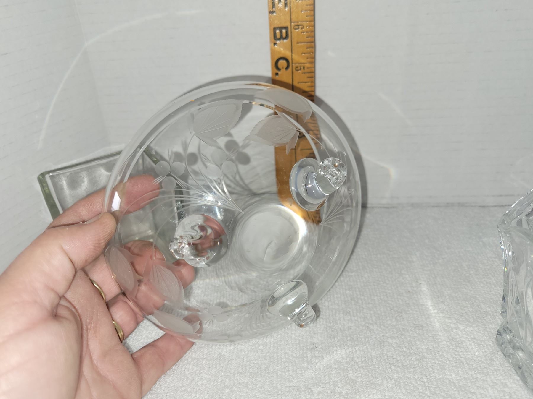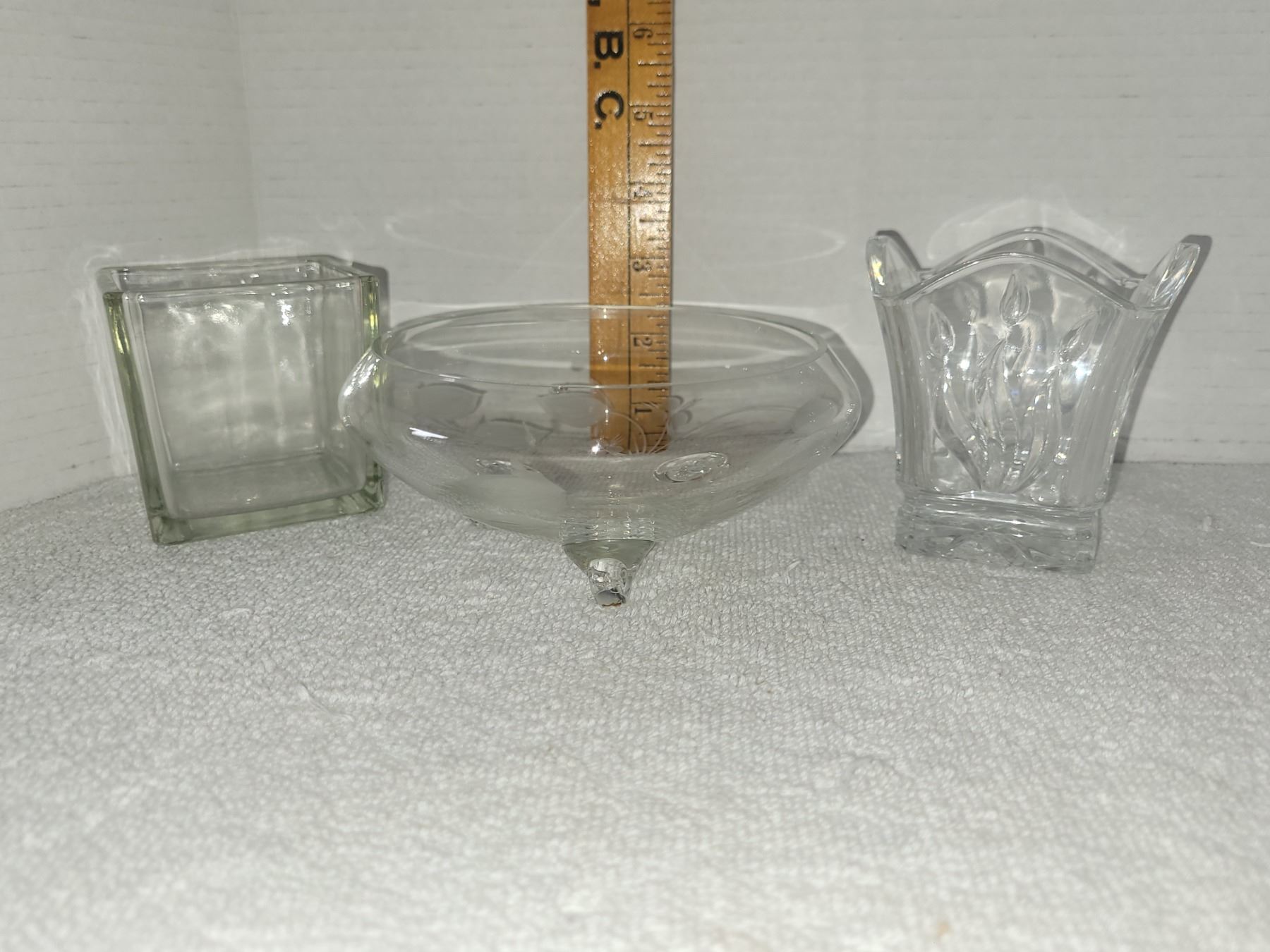 LOT OF 3 CANDLE HOLDERS AND FRESH FLOWER DISH