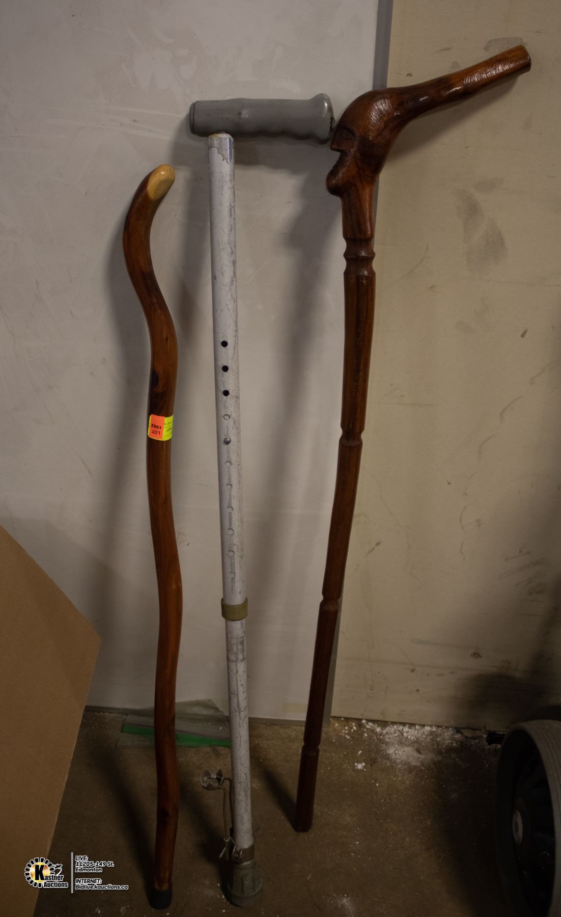 LOT OF 3 CANES 2 ARE WOOD CARVED