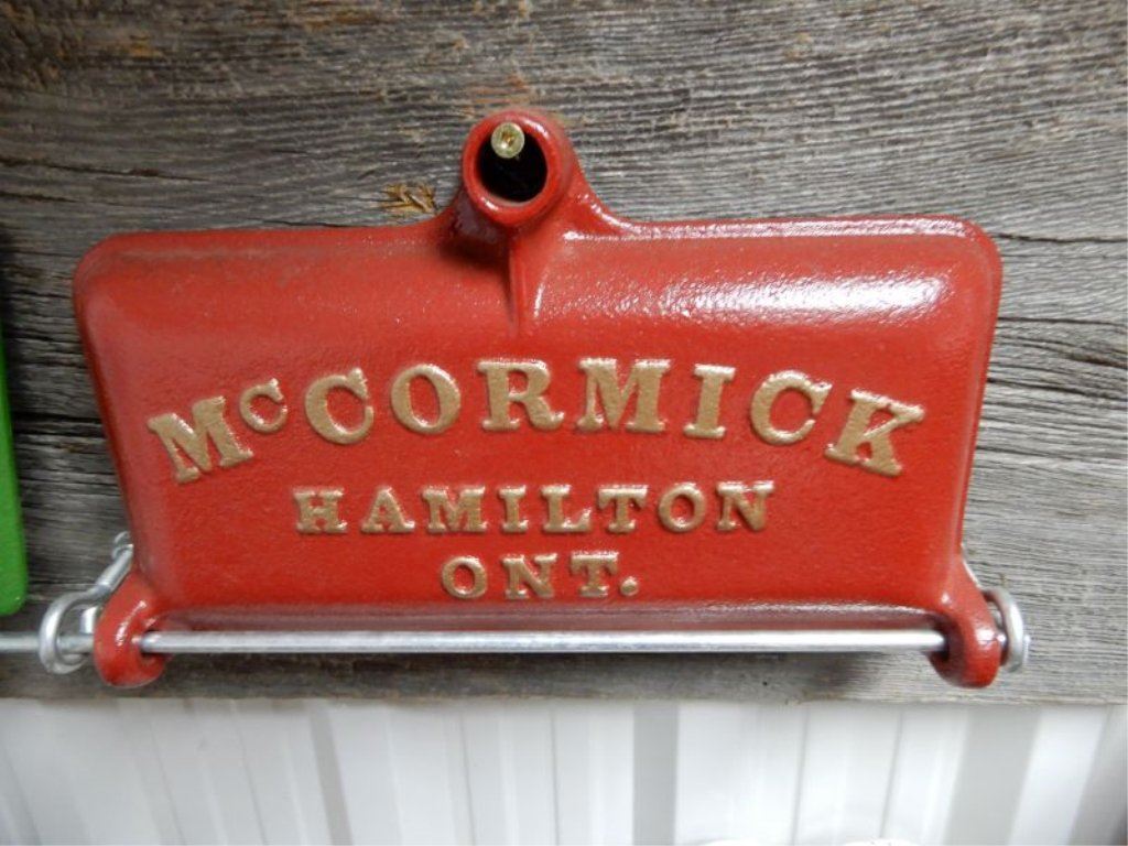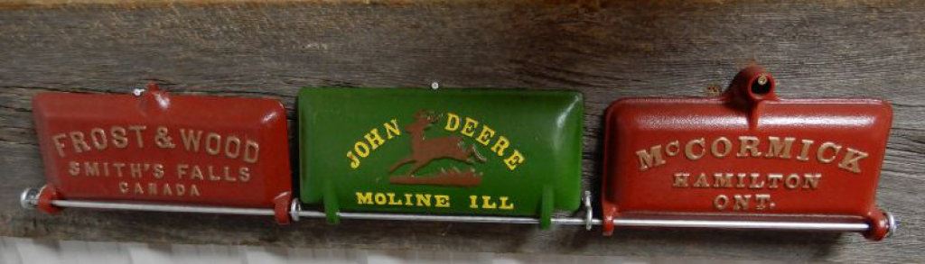 LOT OF 3 CAST TOOL BOX LIDS JOHN DEERE- McCORMICK- FROST & WOODS LOCATION: LOWER BACKROOM