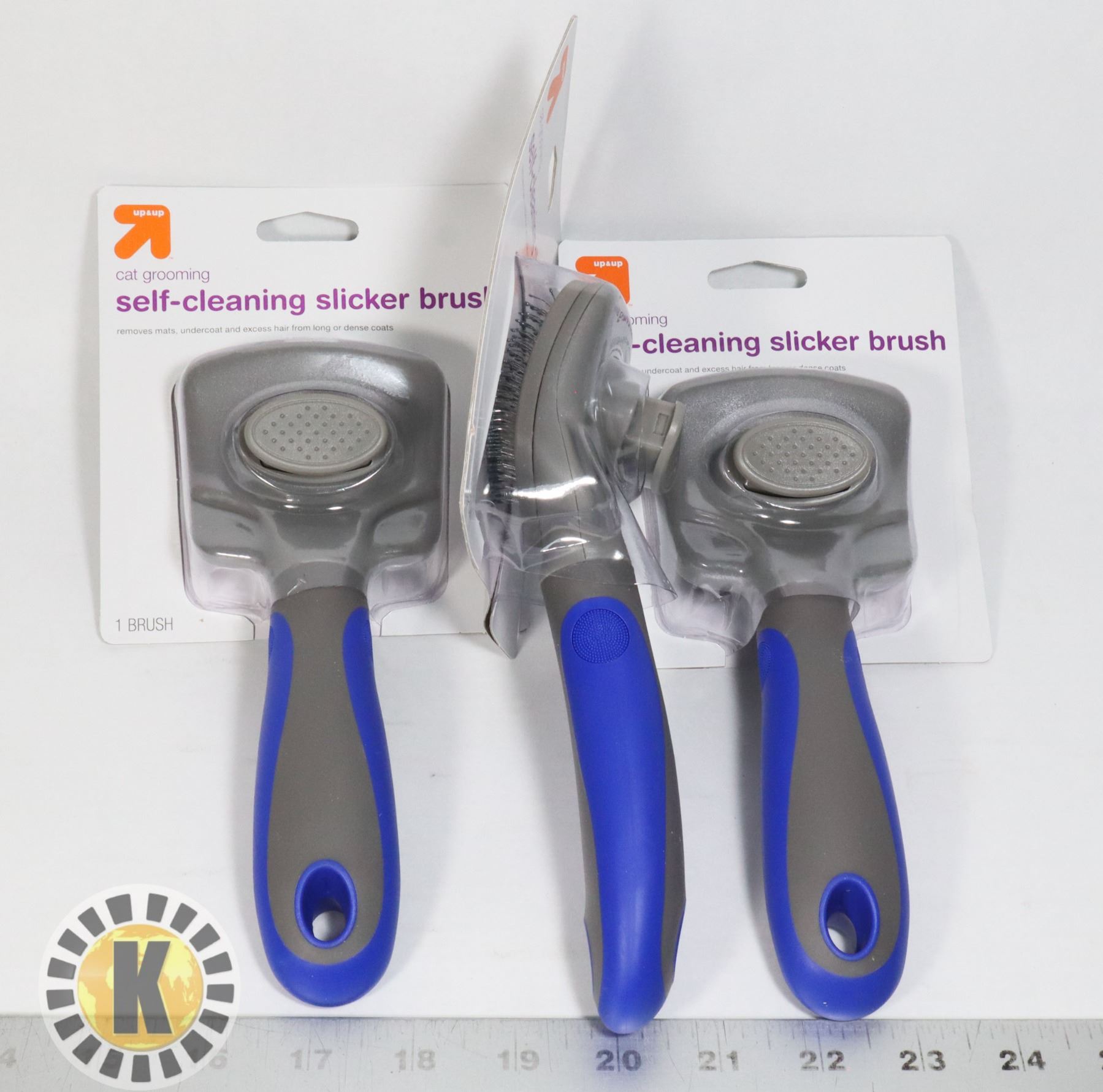 LOT OF 3 CAT GROOMING SELF CLEANING SLICKER BRUSH