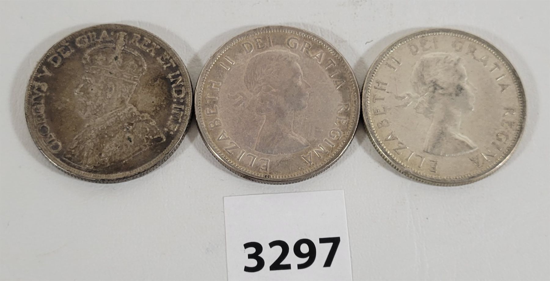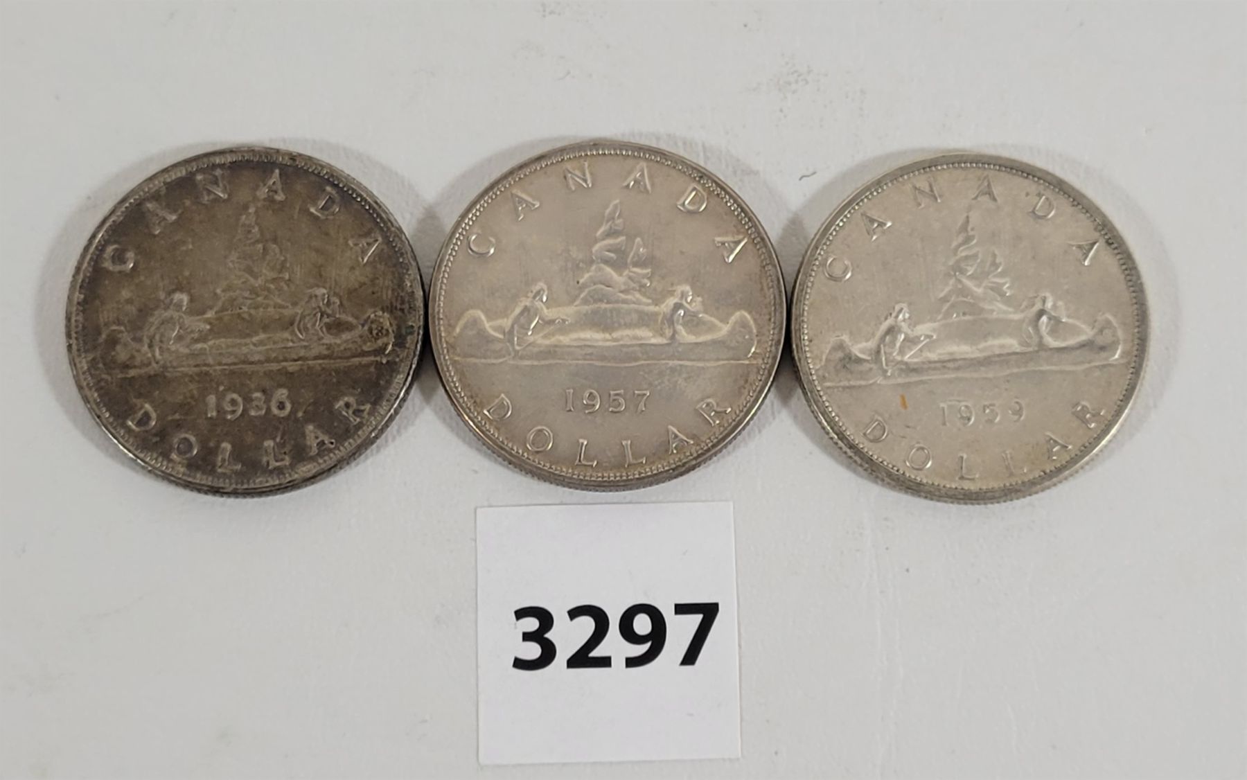 LOT OF 3 - CDN SILVER DOLLARS - 1936, 1957 & 1959