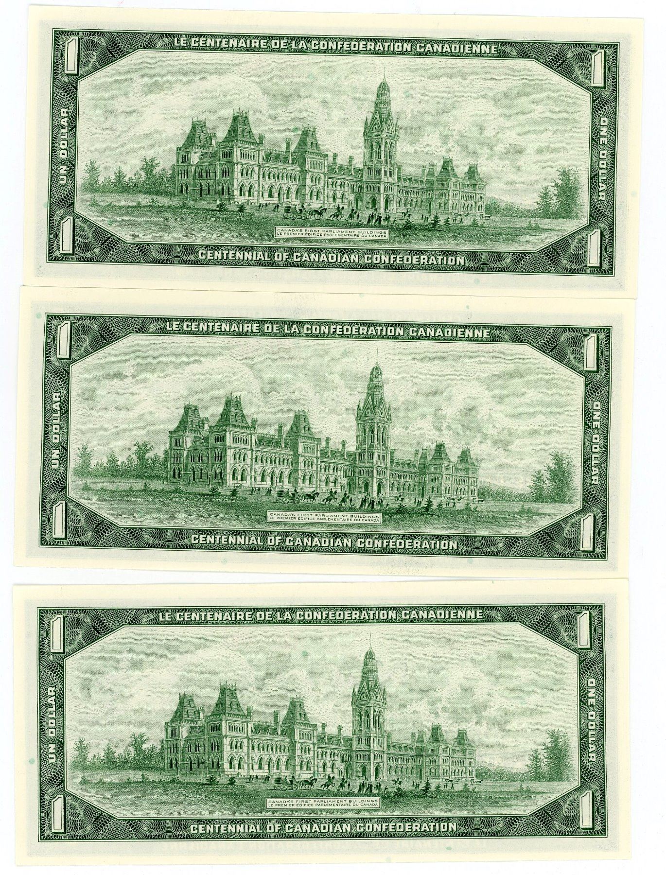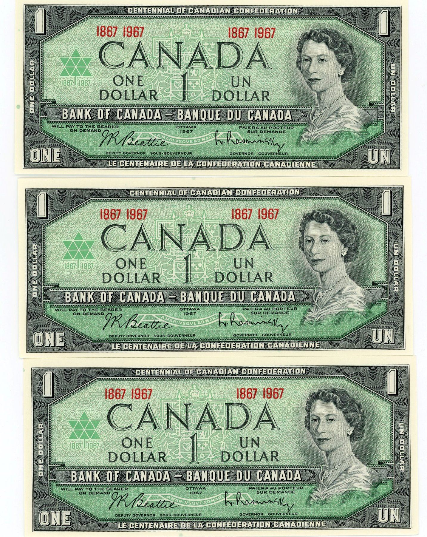 LOT OF 3 CENTENNIAL ONE DOLLAR BILLS (CANADA) *1867-1967*