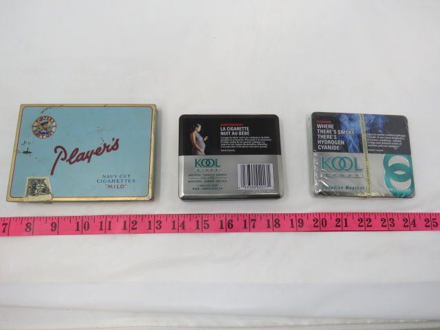LOT OF 3 CIGARETTE TINS (2 X KOOL CANADIAN MENTHOL, 1 UNOPENED) *PLAYERS NAVY CUT* (VINTAGE)