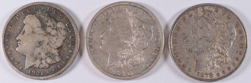 LOT OF 3 CIRCULATED MORGAN DOLLARS, 1878, 1921D, 1921S