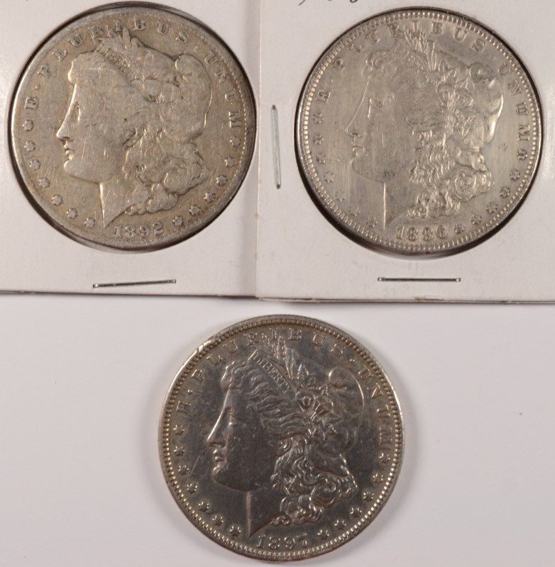 LOT OF 3 CIRCULATED MORGAN DOLLARS 1886, 1892, 1897-S