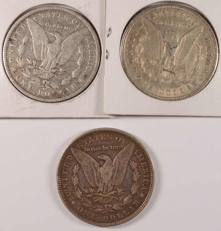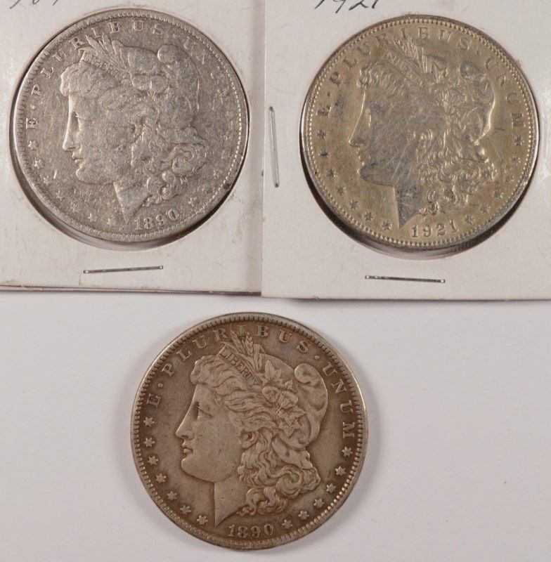 LOT OF 3 CIRCULATED MORGAN DOLLARS 1890, 1890-O, 1921
