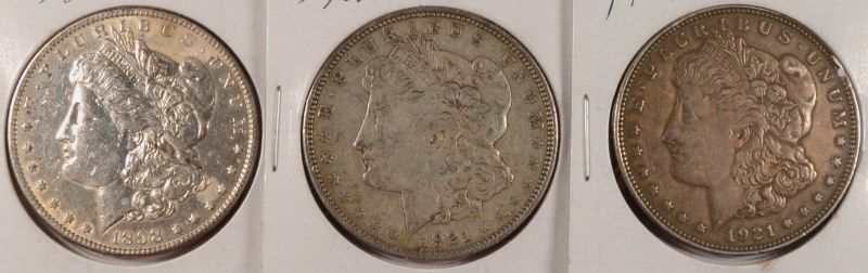 LOT OF 3 CIRCULATED MORGAN DOLLARS 1898, 1921, 1921-D