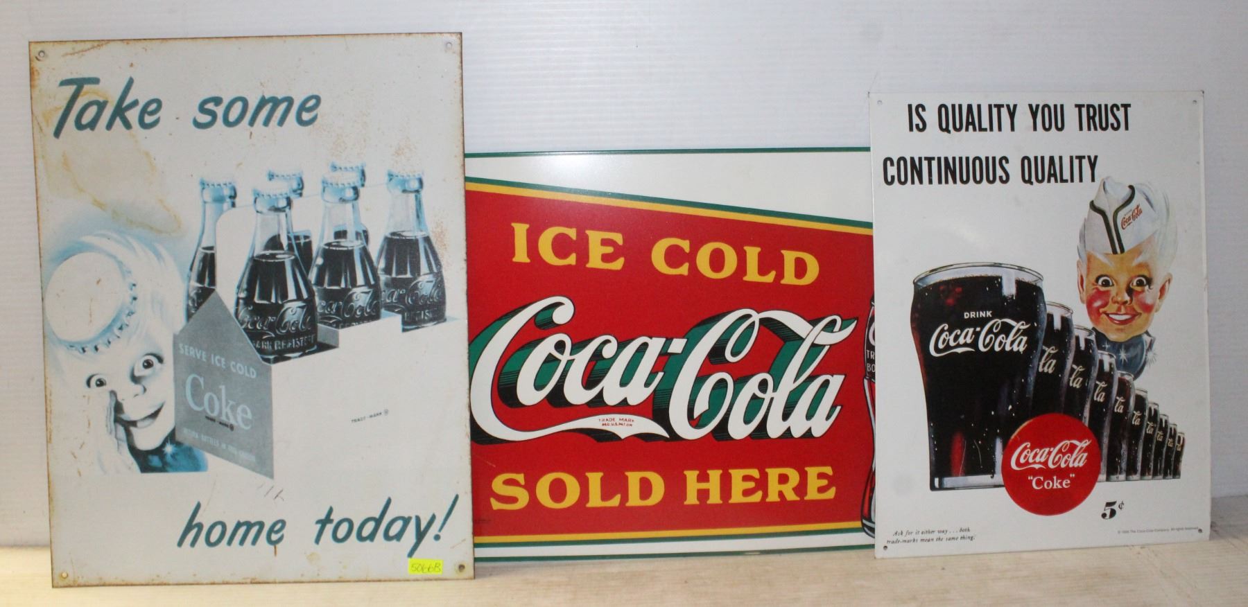 LOT OF 3 COCA COLA REPRODUCTION METAL SIGNS