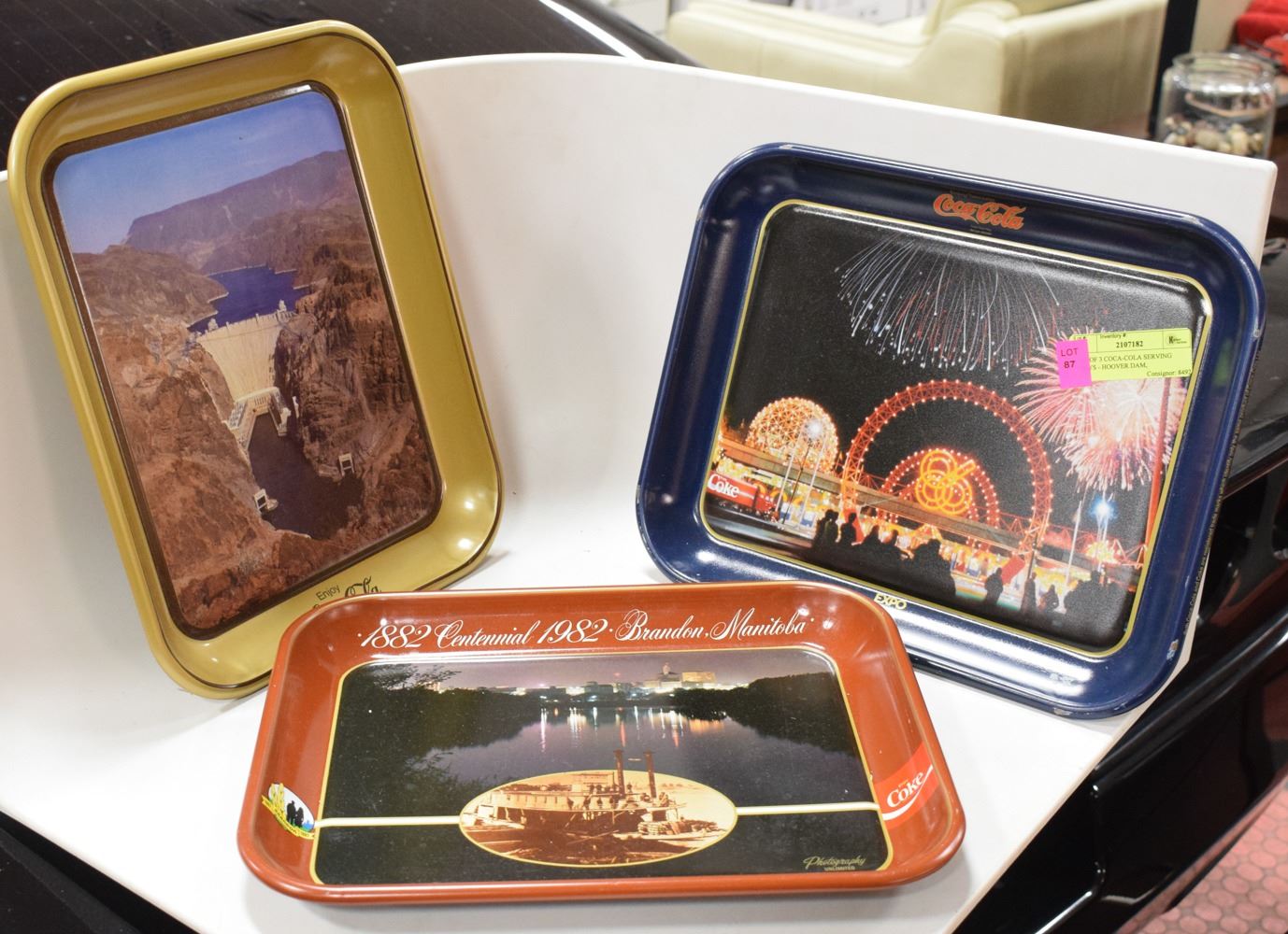 LOT OF 3 COCA-COLA SERVING TRAYS - HOOVER DAM,