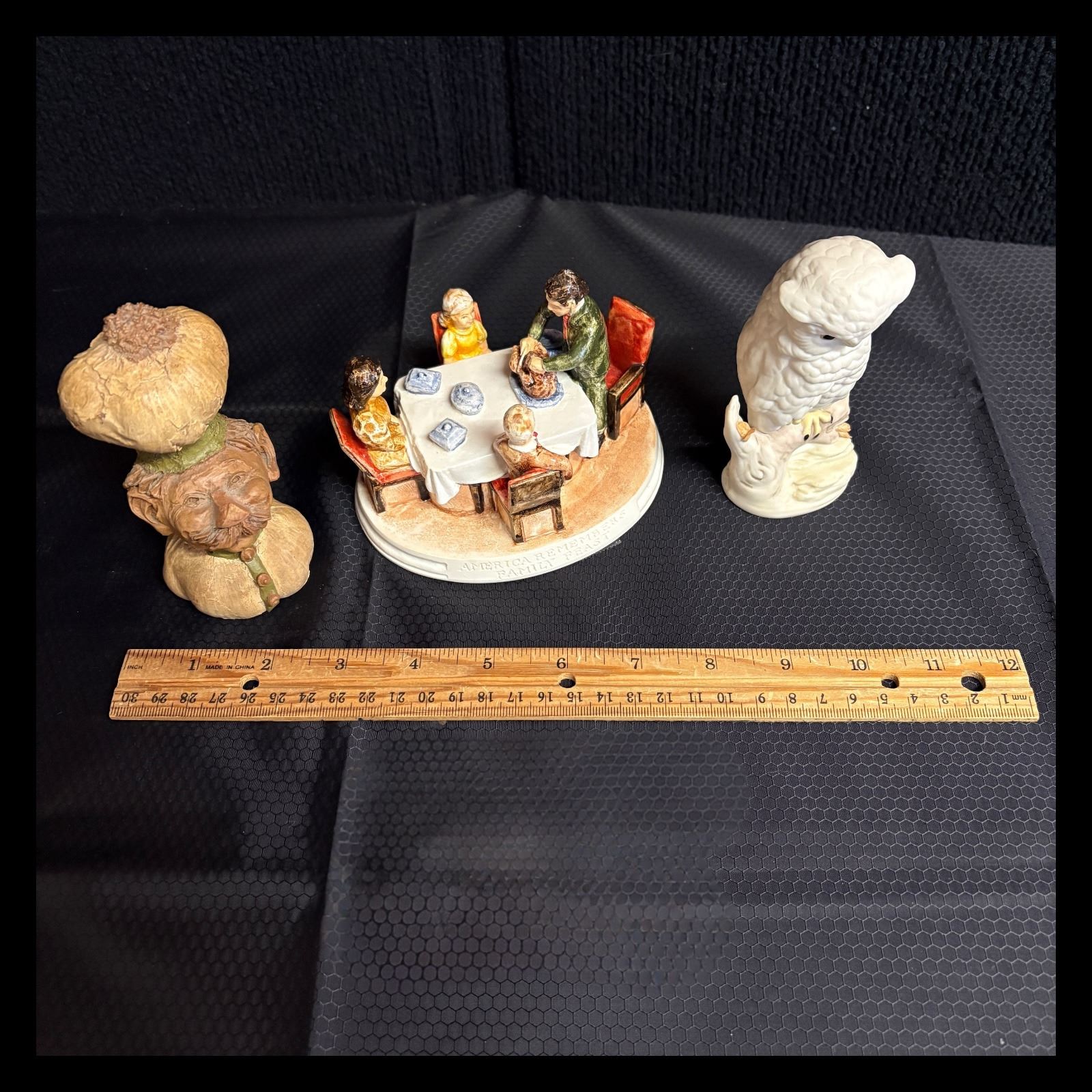 Clay sculpture SIGNED w/ papers, Cybis Owl SIGNED, Rockwell pc has been repaired