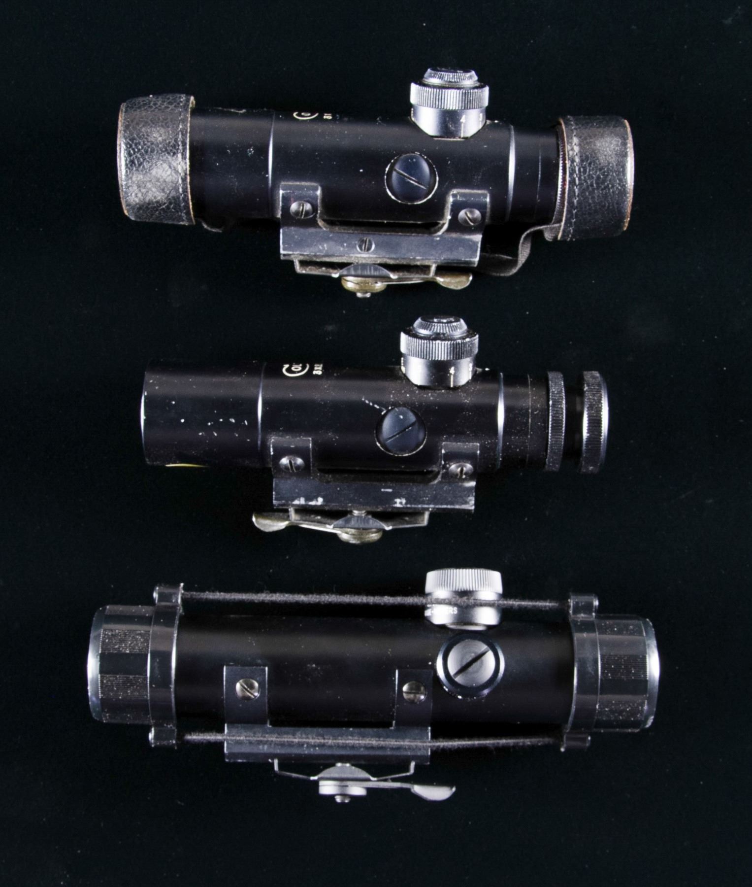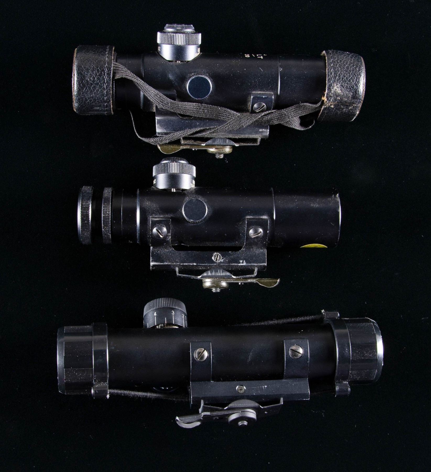 This lot consists of the following Colt AR-15/M16 Scopes: 1) Colt 3x20 Scope with mount. Duplex crosshair reticle. Very good optics. CONDITION: tube shows scattered light flaking. Japanese quality sticker present. 2) Colt 4x21 Scope with mount. Scope has duplex crosshair reticle & very good optics. Blue C-More Colt box, lens covers & manual present. CONDITION: scope shows very light flaking on the exposed edges. 3) Colt 3x20 Scope with mount. Duplex crosshair reticle & very good optics. Leather scope caps present. CONDITION: mount & scope show some light flaking & usage wear. (02-24538-1/MJC). NON-GUN. $400-700 for lot.