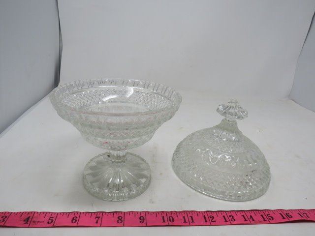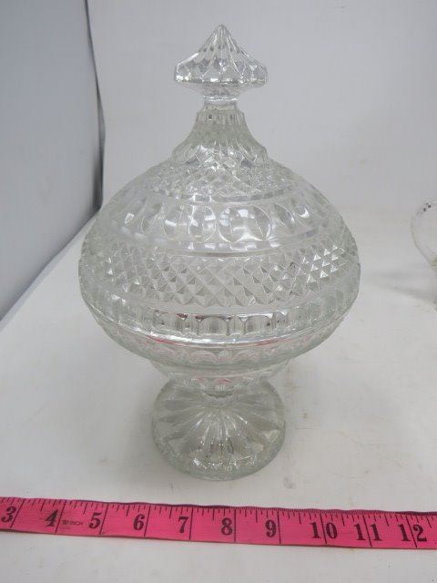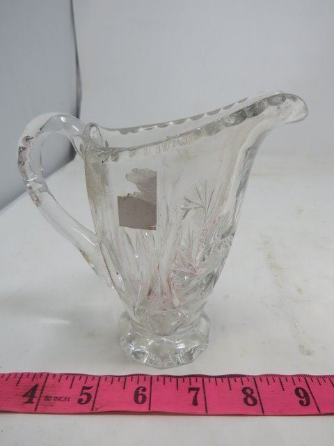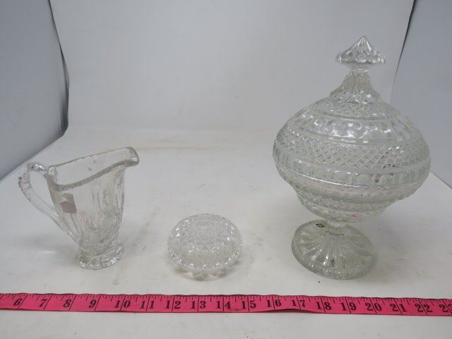LOT OF 3 CRYSTAL PIECES (CANDY DISH WITH LID) *RING HOLDER WITH LID* (CREAM PITCHER)