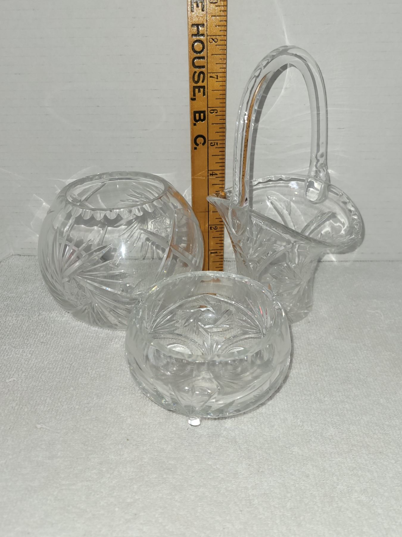 3 STUBBY BOUQUET BOWLS, ONE IS FOOTED