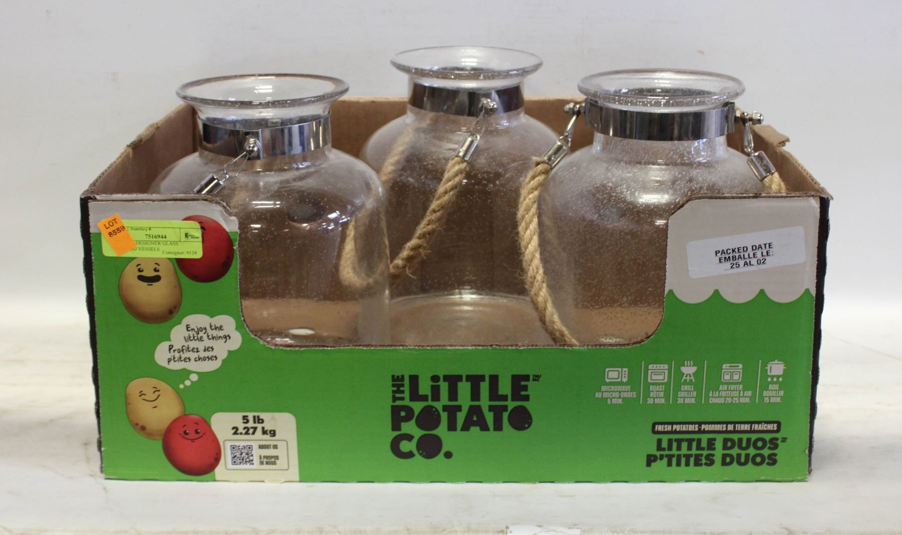 LOT OF 3 DESIGNER GLASS HANGING VESSELS