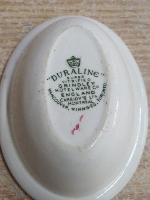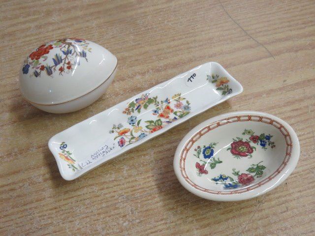 LOT OF 3 DISHES, AINSLEY COTTAGE GARDEN, DURALINE PICKLE DISH, EGG SHAPED BOWL BY SADLER