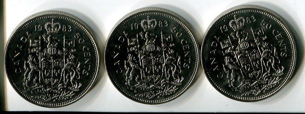 LOT OF 3 FIFTY CENT COINS (CANADA) *1983*