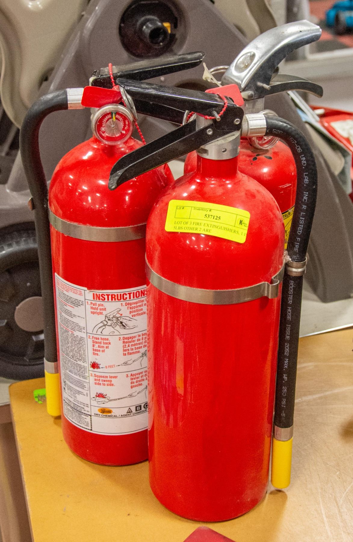 LOT OF 3 FIRE EXTINGUISHERS, 1 X 5LBS OTHER 2 ARE