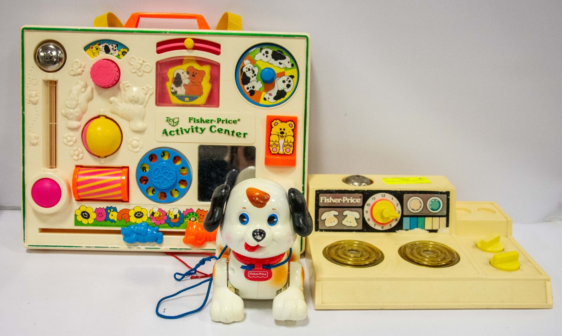 ACTIVITY CENTER, STOVE, AND DOG WITH PULL STRING