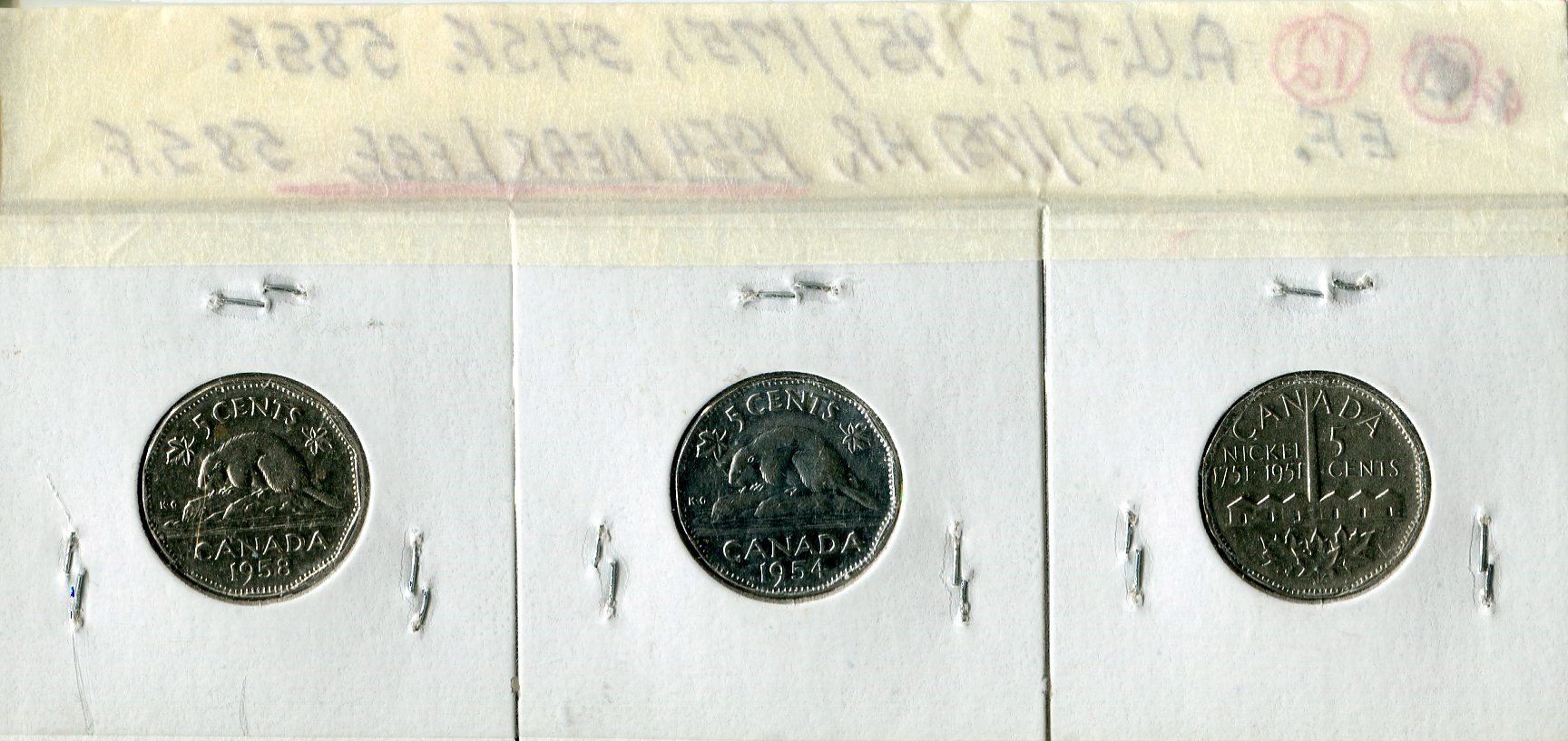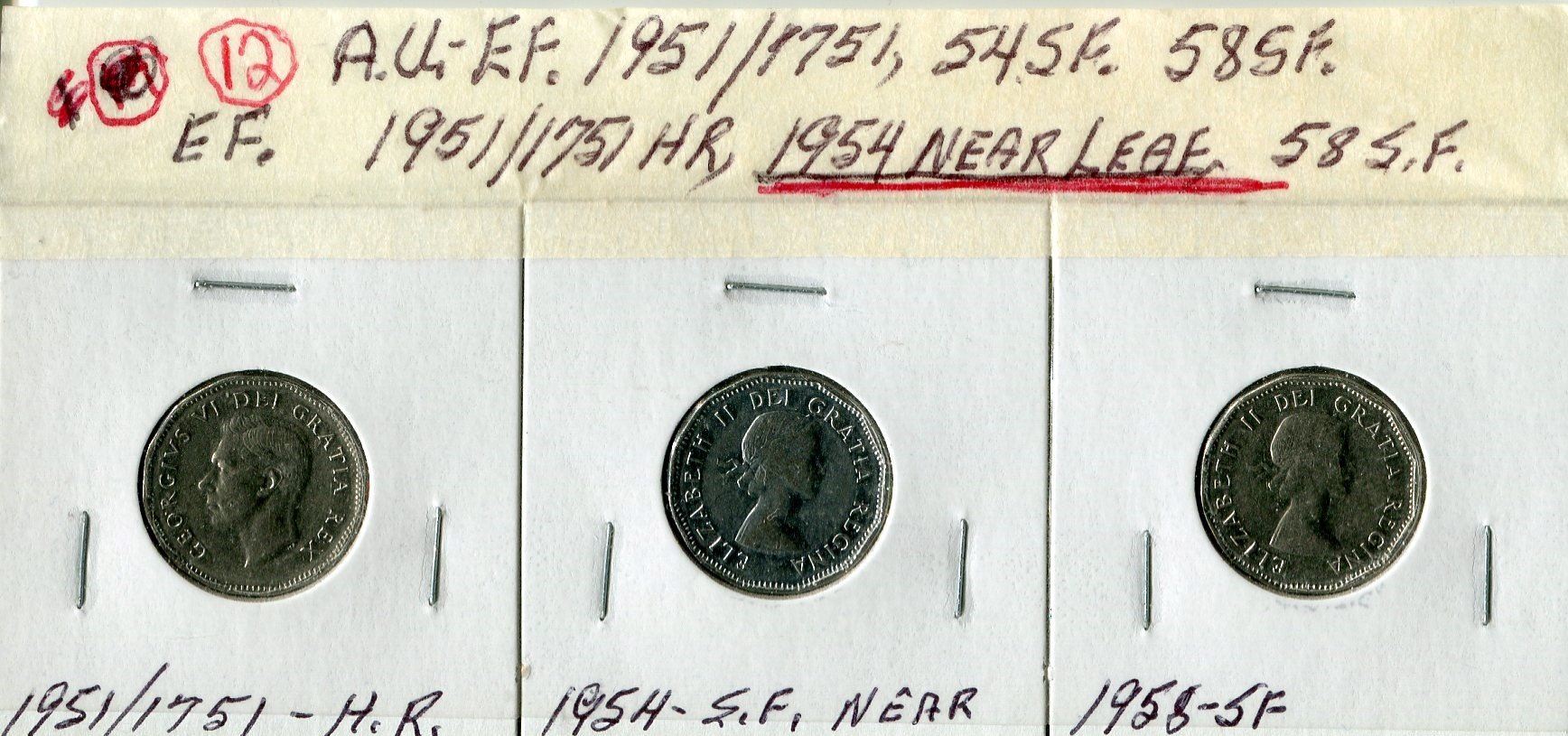 LOT OF 3 FIVE CENT COINS ( CANADA) *1954, 1958, 1951*