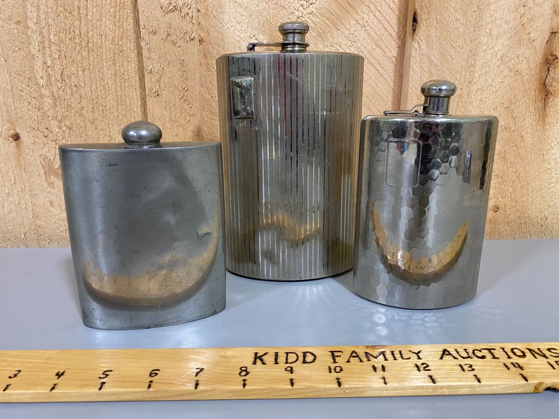 LOT OF 3 FLASKS INCLUDING ONE ENGLISH PEWTER