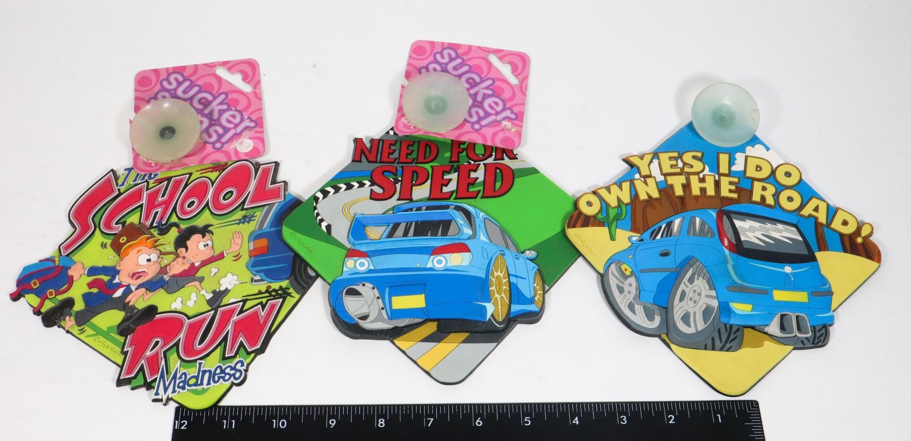 LOT OF 3 FUN SUCTION SIGNS FOR BACK CAR WINDOW