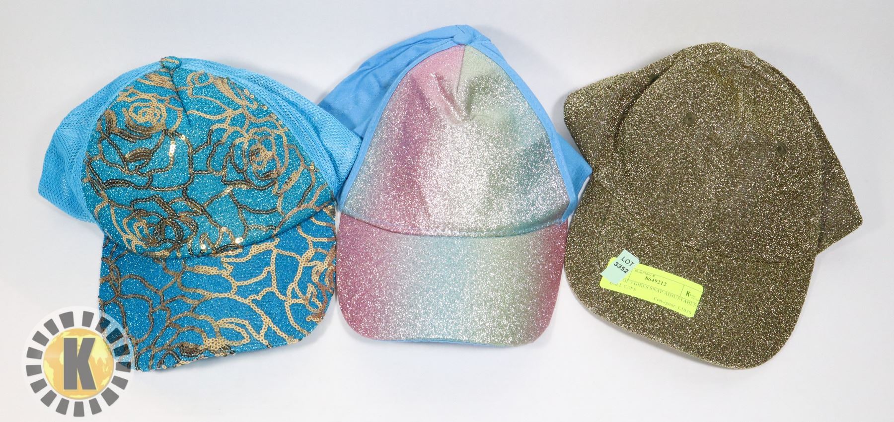 LOT OF 3 GIRLS SNAP ADJUSTABLE BALL CAPS