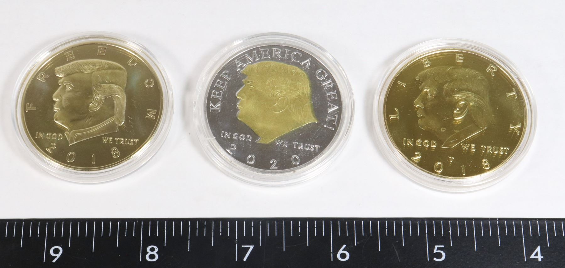 LOT OF 3 GOLD & SILVER PLATED TRUMP MEDAL/TOKEN