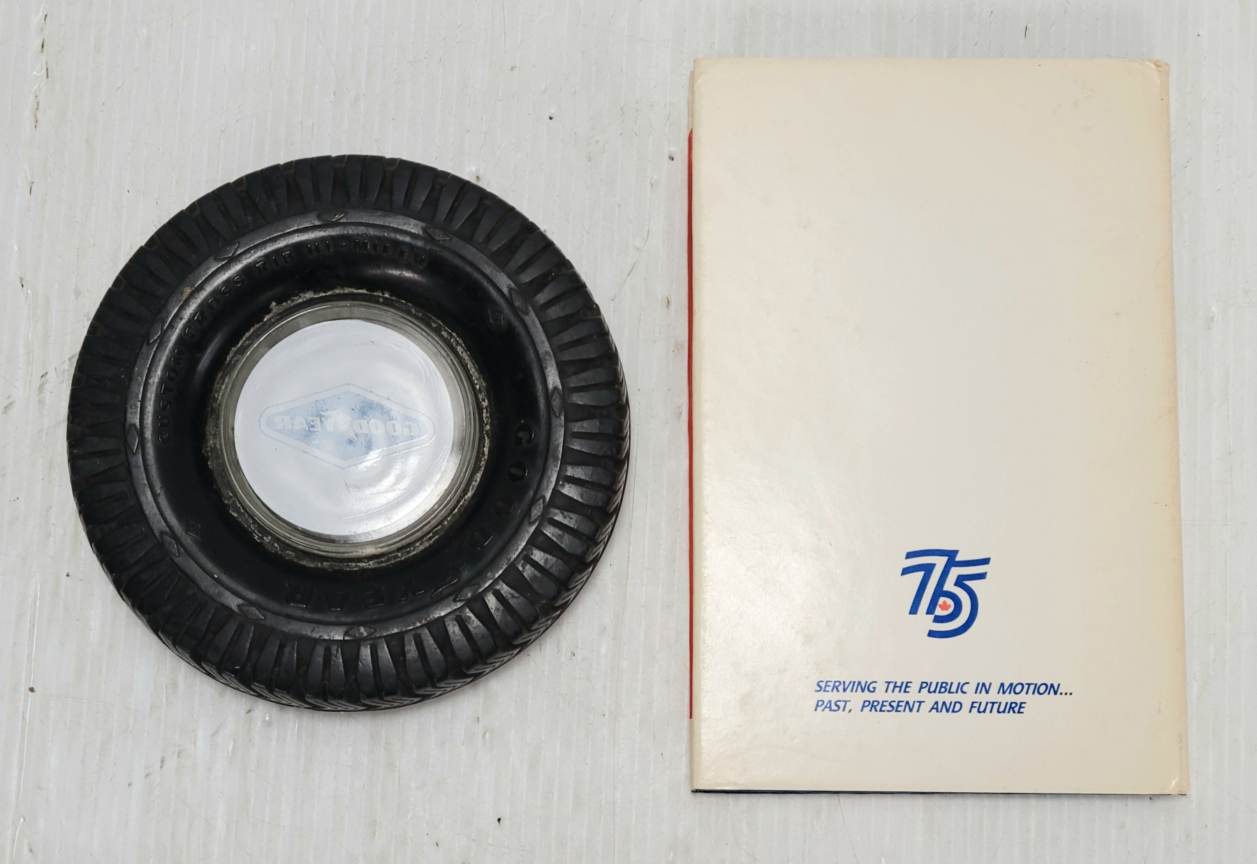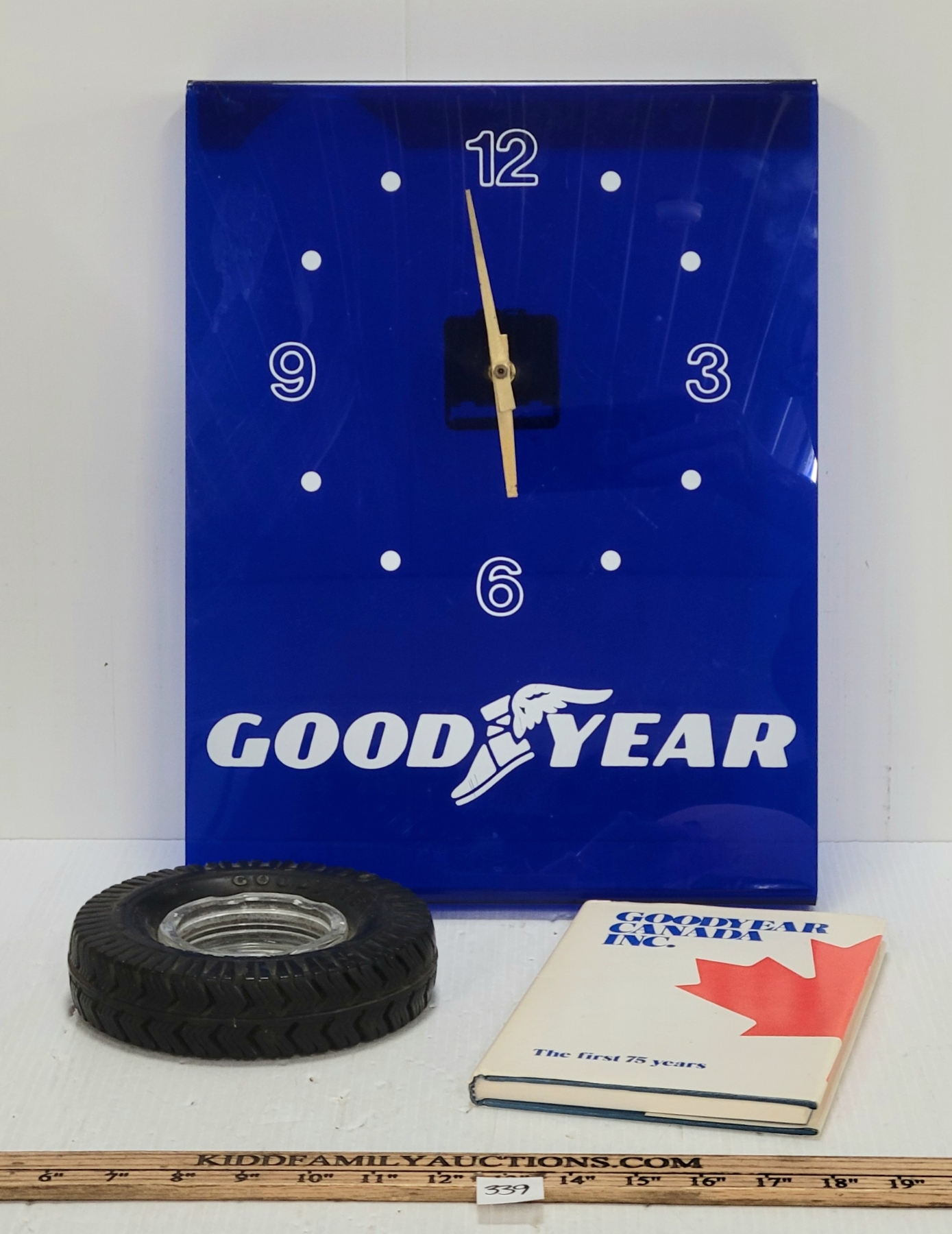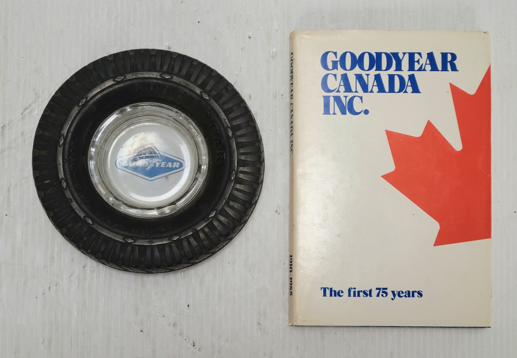 LOT OF 3 - GOOD-YEAR WALL-CLOCK, TIRE ASHTRAY &  GOODYEAR CANADA INC.: THE FIRST 75 YEARS