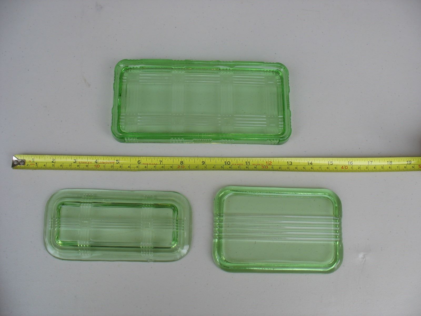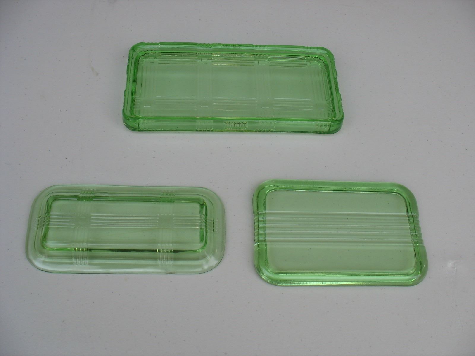 LOT OF 3 GREEN DEPRESSION GLASS CONTAINER LIDS - Slight Chips on all 3