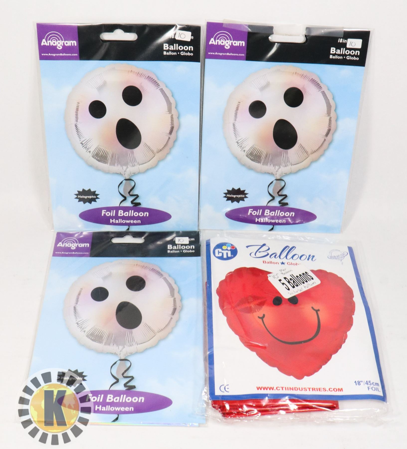 LOT OF 3 HALLOWEEN AND 1 HEART FOIL BALLOONS
