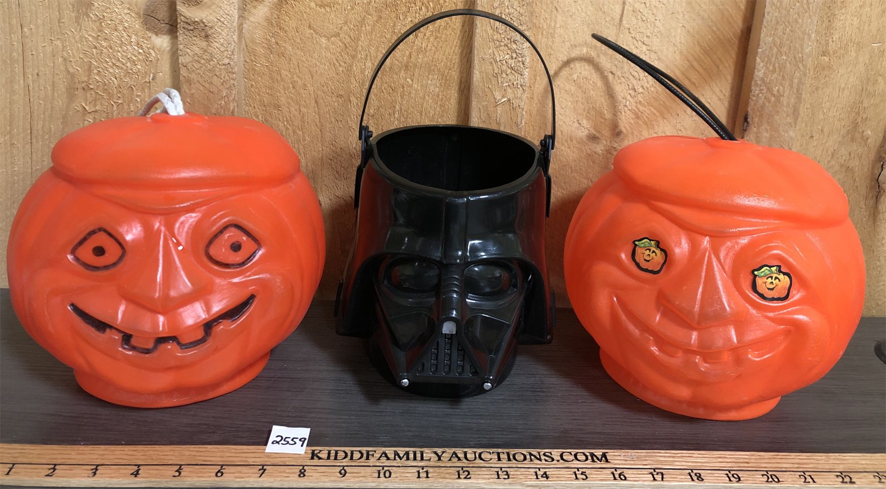 NOTE: BLOW MOLD PUMPKINS ARE MARKED "PLAYTOY IND. INC. TORONTO CANADA" DARTH VADER IS MARKED RUBIES COSTUME CO.