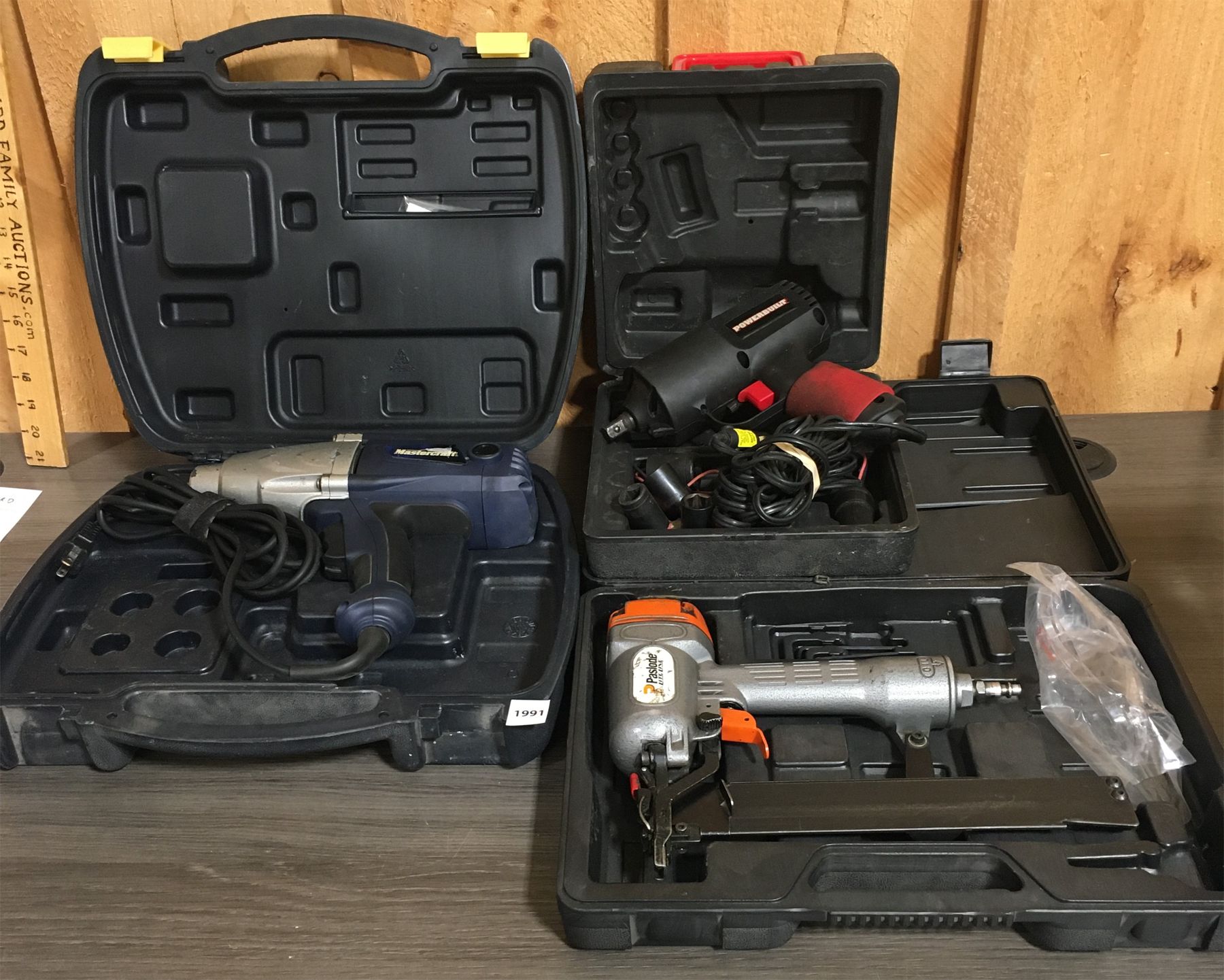 NOTE: INCLUDES PASLODE LITE LINE STAPLER IN CASE & MC IMPACT 1/2 INCH (AS IS) & POWERBUILT 12 V 1/2 INCH IMP