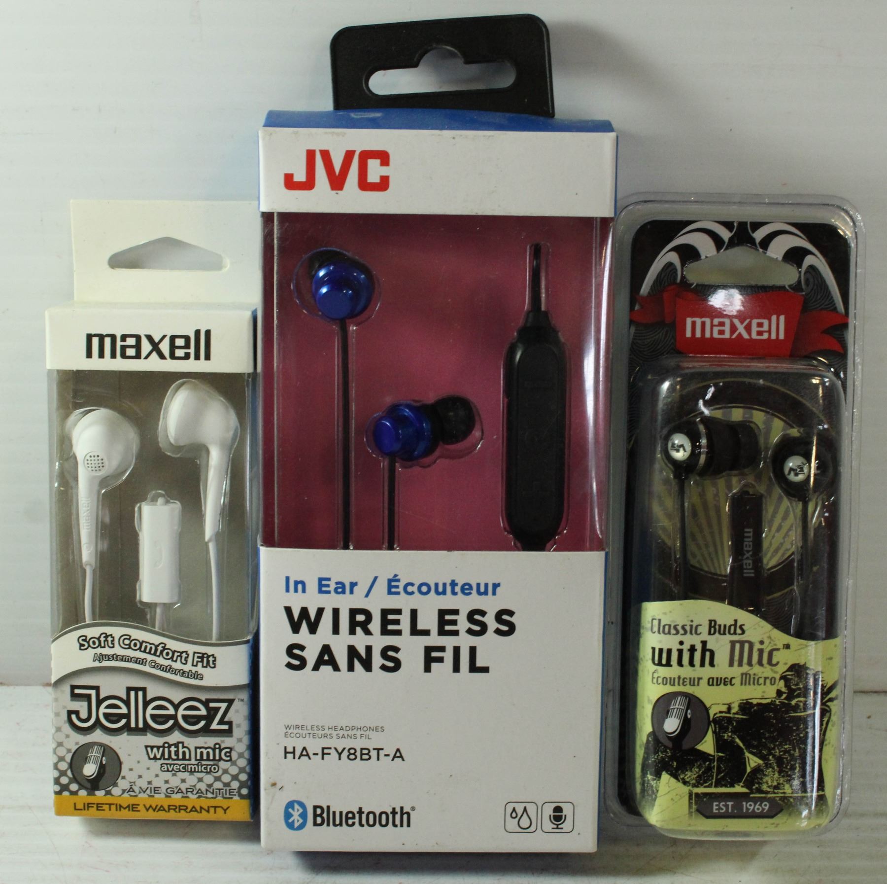 LOT OF 3 HEADPHONES INCLUDES JVC, MAXELL AND