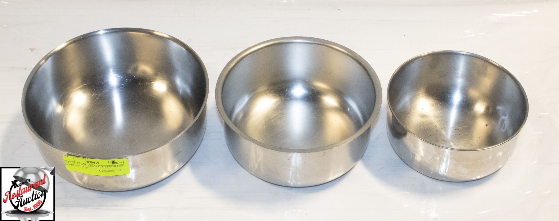 LOT OF 3 HIGH QUALITY STAINLESS BOWLS 7"/6"/5"