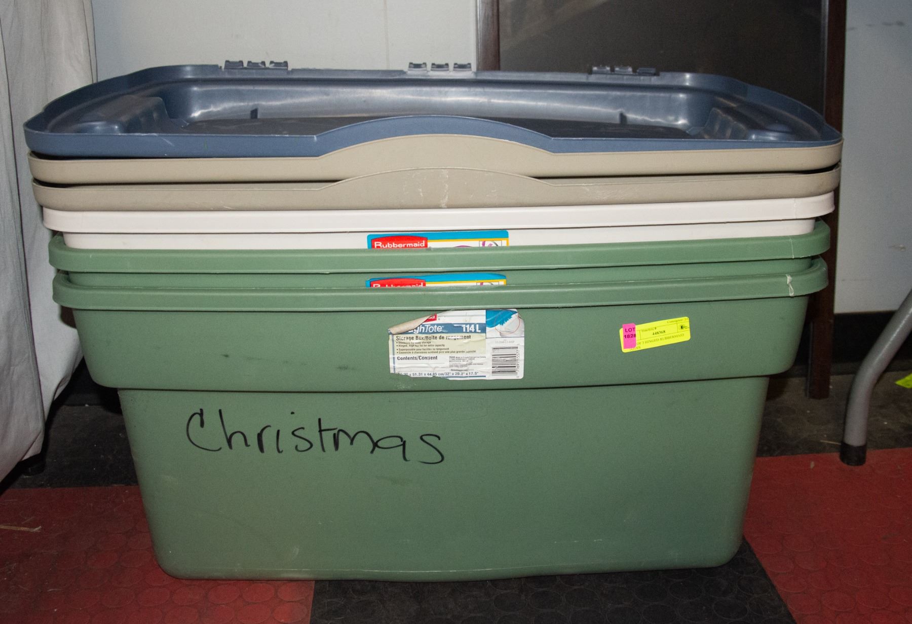 LOT OF 3 HINGED RUBBERMAID TOTES