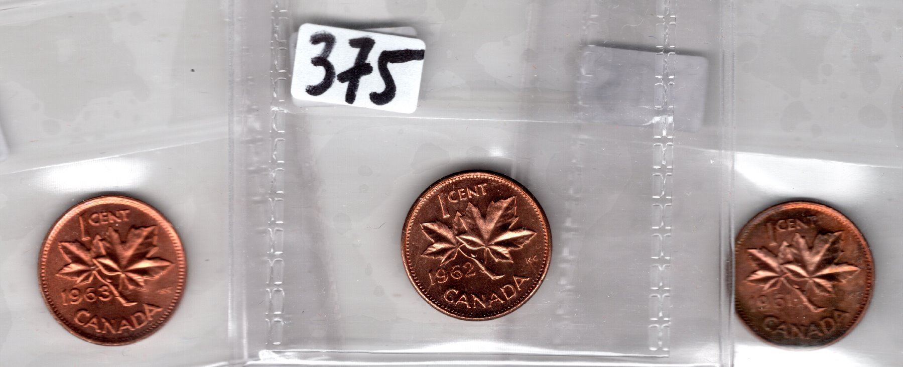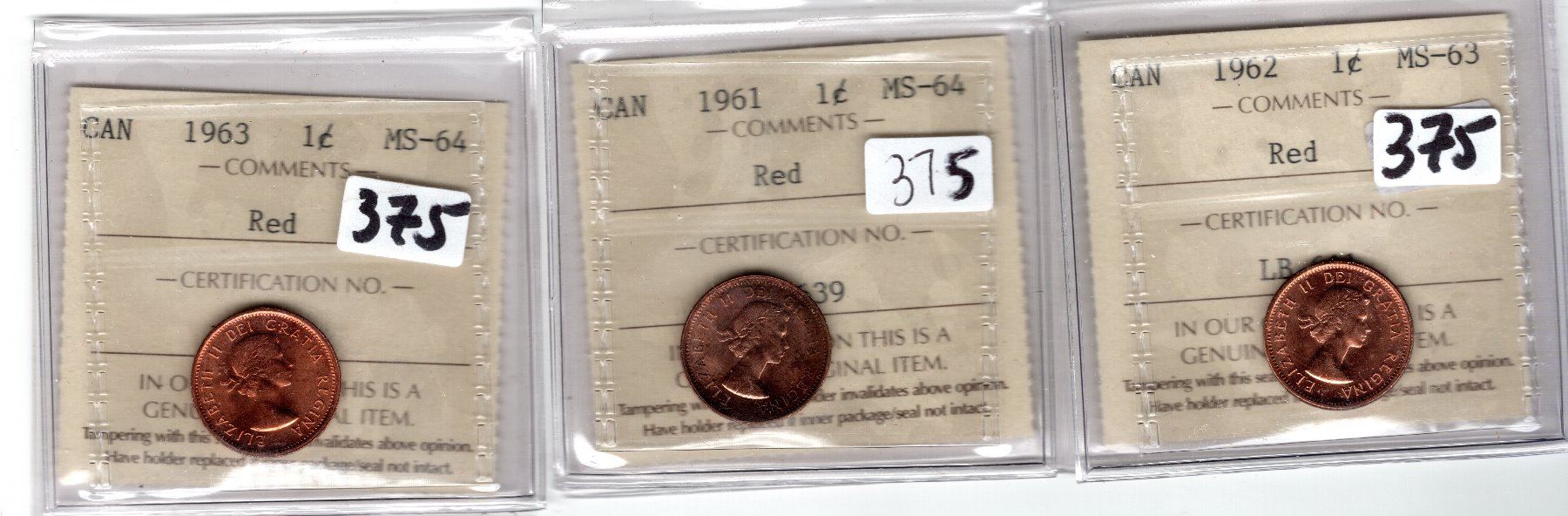 LOT OF 3 ICCS CERTIFIED ONE CENT COINS (1961,62,63)