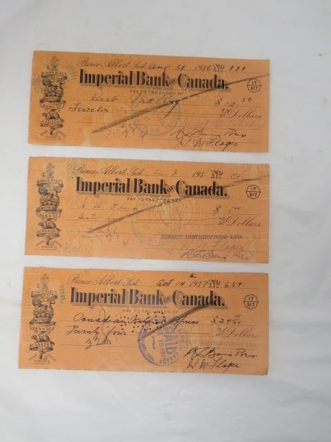 LOT OF 3 IMPERIAL BANK OF CANADA CHEQUES (1936 X 2) *1937*