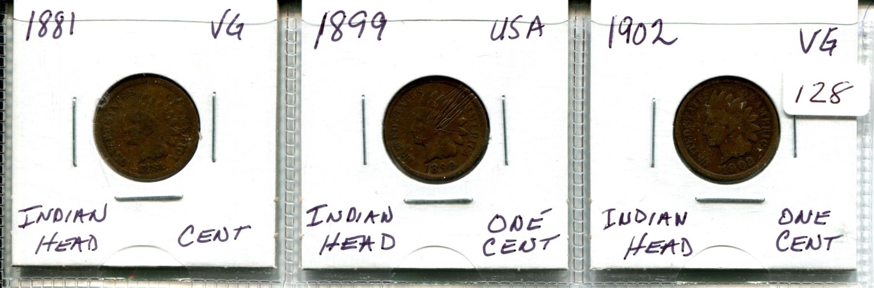 LOT OF 3 INDIAN HEAD CENTS 1881, 1899, 1902