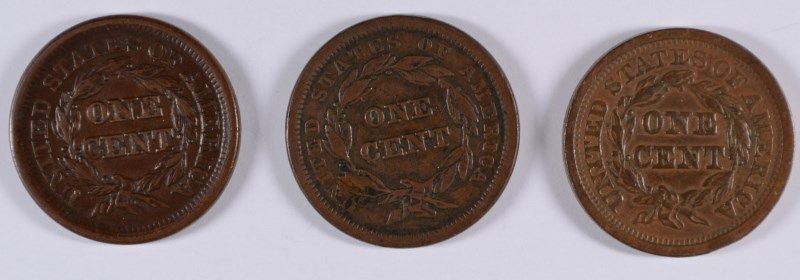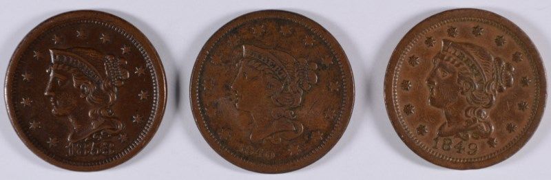 LOT OF (3) LARGE CENTS 1840, 1849, 1853 VF-XF