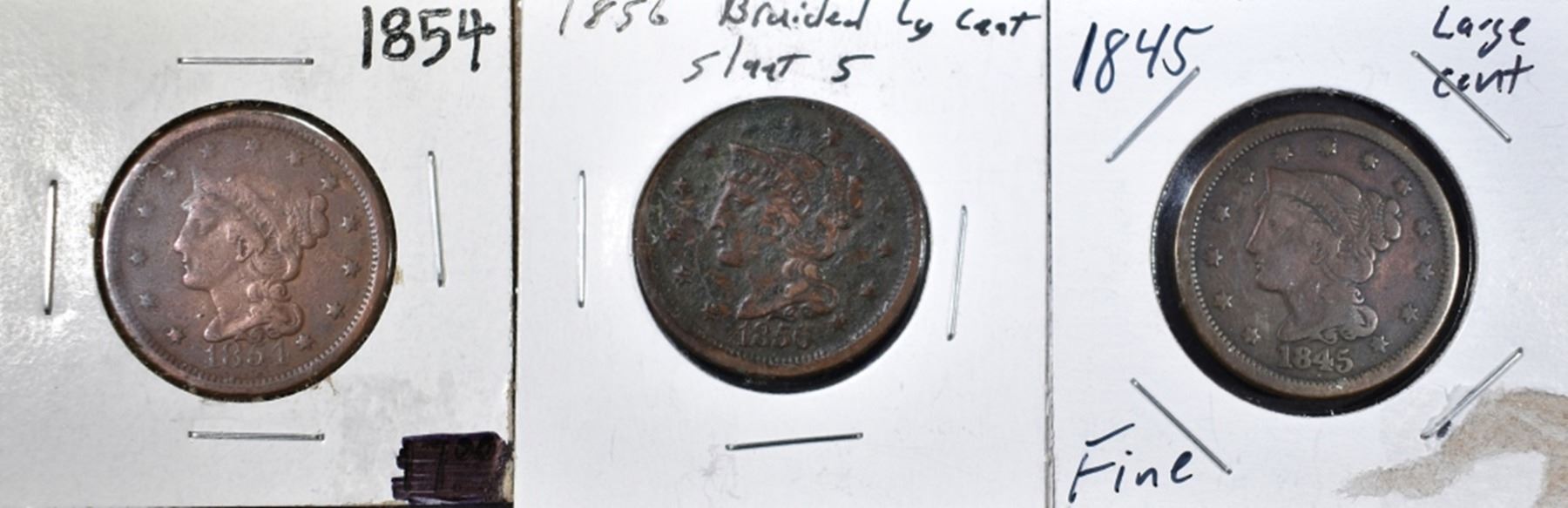 1845 FINE, 1854 VG & 1856 FINE. ESTIMATE $90 - $110.