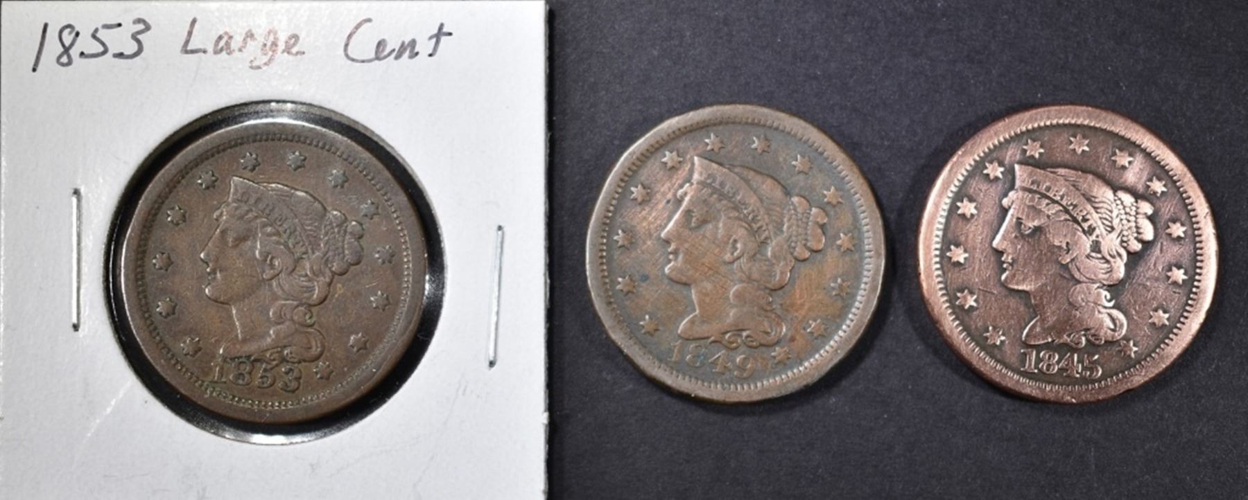 1845 FINE, 1849 FINE & 1853 VF. ESTIMATE $100 - $125.