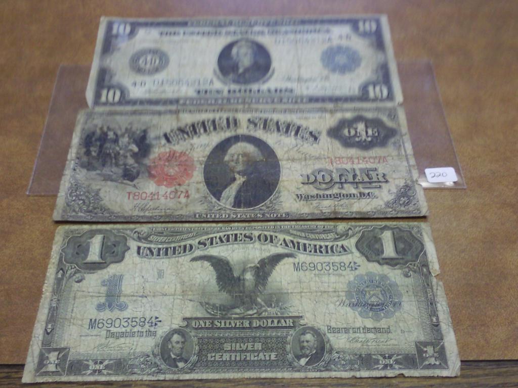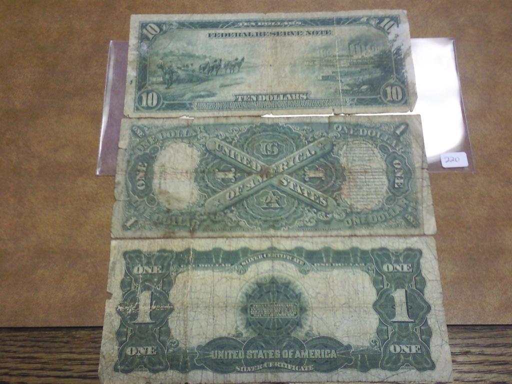 1899-$1 BLACK EAGLE, 1917 $1 LEGAL TENDER, 1914 $10 FRN